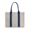 Cabas en coton écru avec sangles en tissu. Porté épaule. Ferme à l'aide d'une pression. Des œillets de chaque côté du sac permettent d'ajouter une bandoulière.