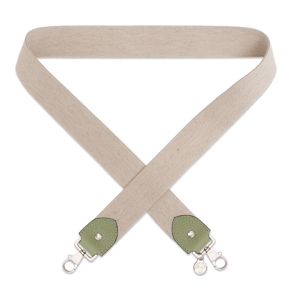 Fabric and bull leather shoulder strap. Length : 115cm.