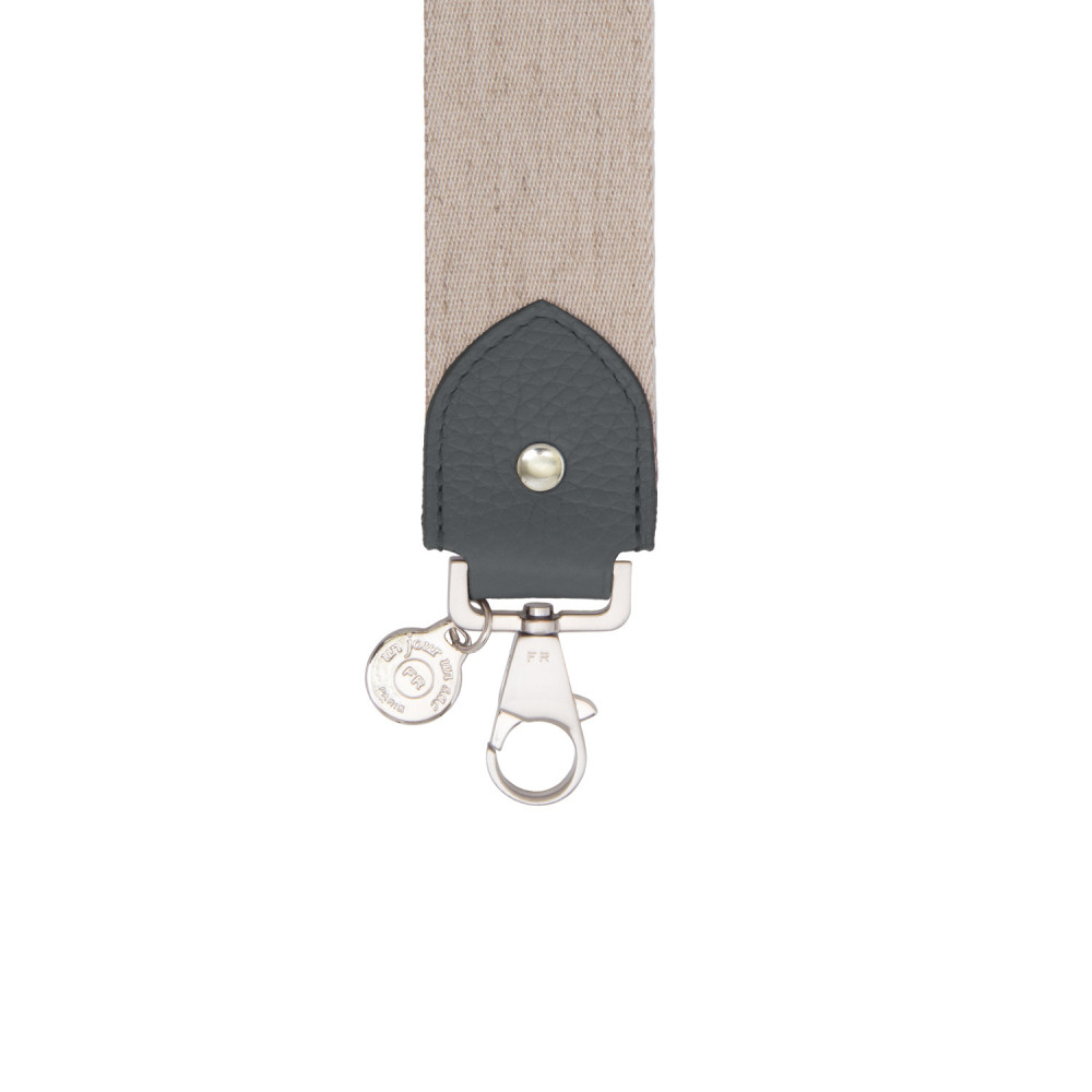 Fabric and bull leather shoulder strap. Length : 115cm.