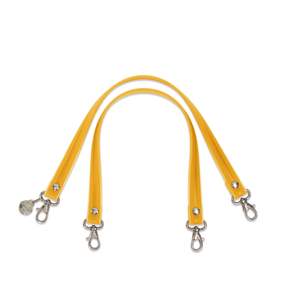 Pair of rubber handles. Hand or shoulder carried.Composition : 100% PVC.Size : L: 39 cm x H: 1,5 cm.