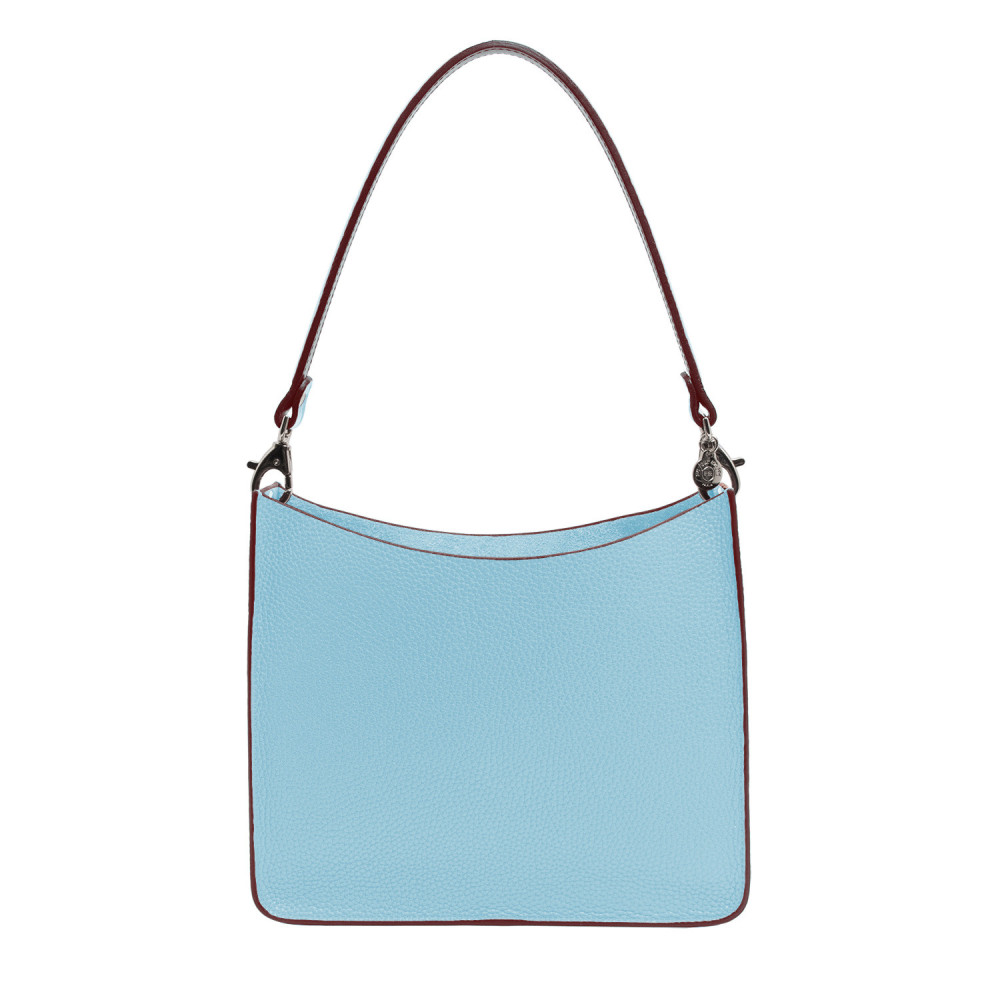 Shoulder bag in matt grained leather with matching handle. Inside the bag, the leather pouch closes with a zipper. The bag’s elements unhook. Change the handle with a shoulder strap of reference VBBULL100 to wear the bag cross-body.