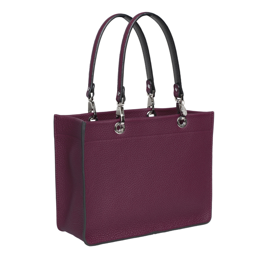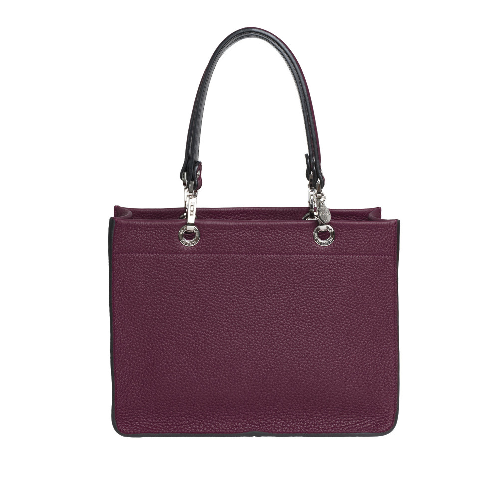 Leather handbag with short matching handles and a zipped fabric pouch. All of the elements unhook and are interchangeable.