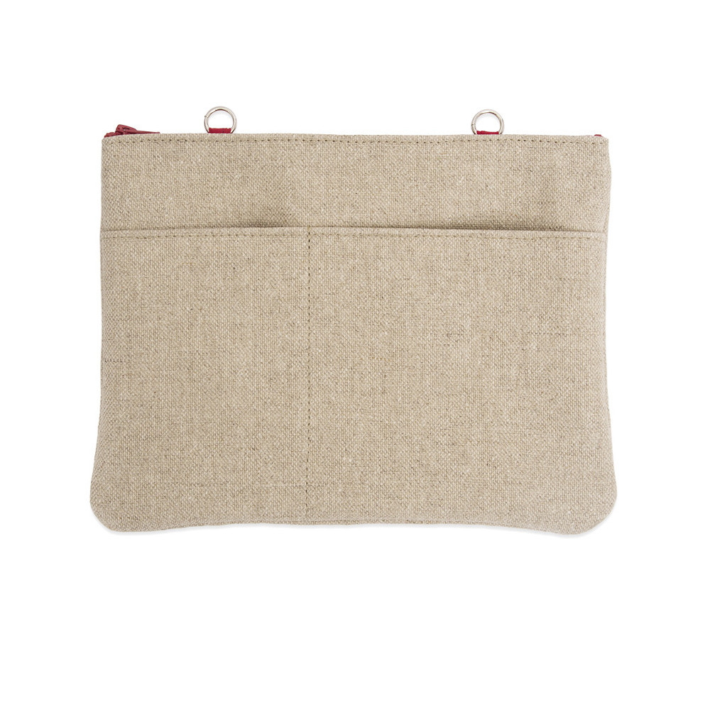 Textile pouch with zipper. Can be fixed to the bag with the two rings.Size: w: 25cm x h:20cm.