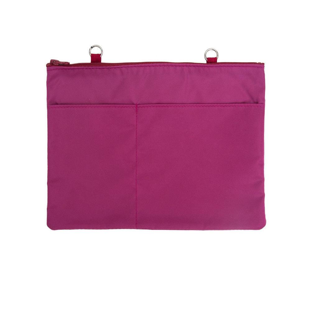 Textile pouch with zipper. Can be fixed to the bag with the two rings.Size: w: 25cm x h:20cm.