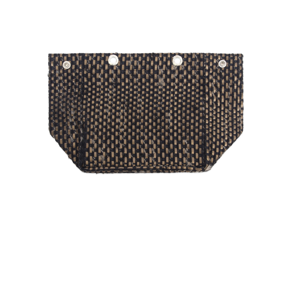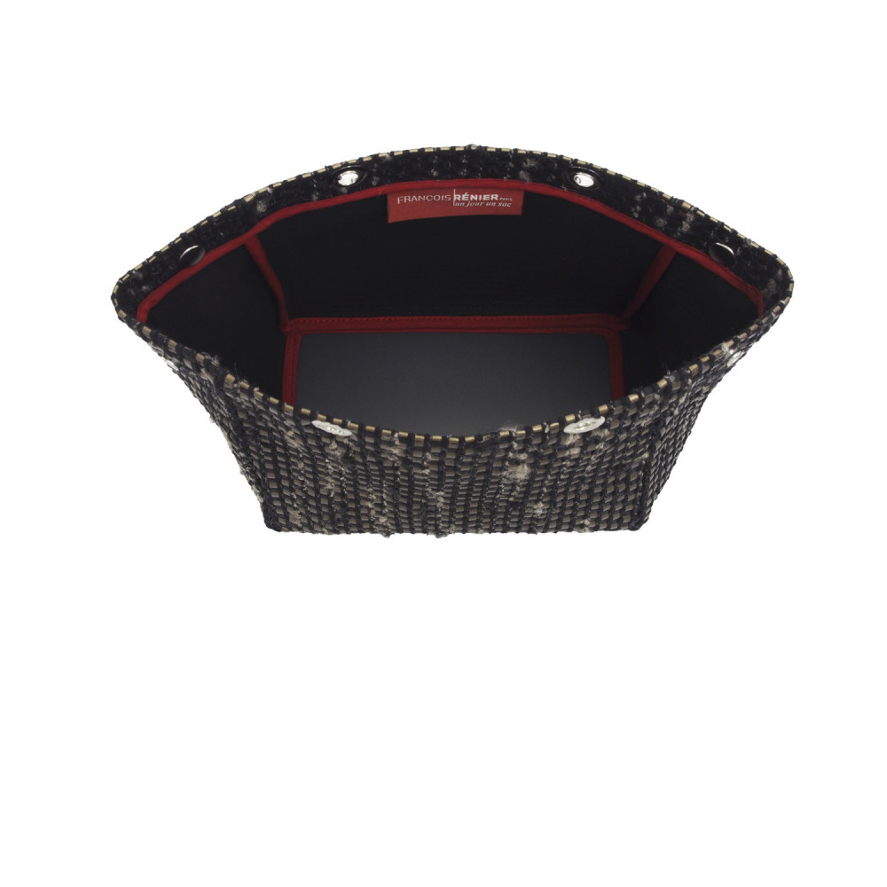 Woven canvas bag with tweed threads.Composition : 89% polyester 11% polyamide.Inside : 100% cotton.Size : l: 22cm x h: 20cm x w: 14cm.