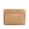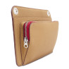 Leather bag with matching fabric and leather shoulder strap, outside pocket with zipper.