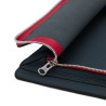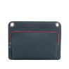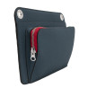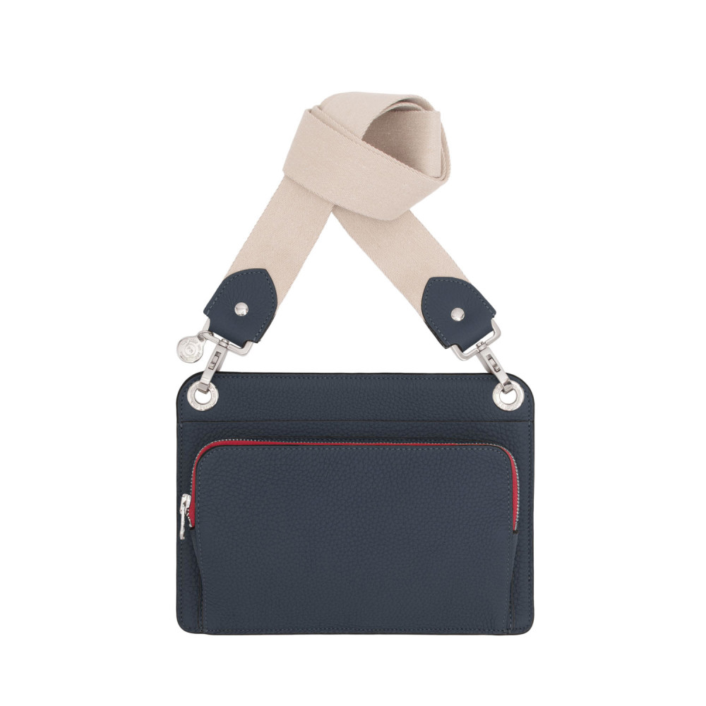 Leather bag with matching fabric and leather shoulder strap, outside pocket with zipper.
